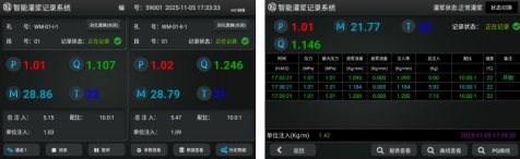 不同颜色同屏实时显示两个通道的灌浆关键信息。